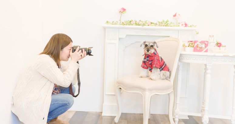カメラマンとマンツーマンで撮影の仕方を教わりながら愛犬を撮影するコースです。